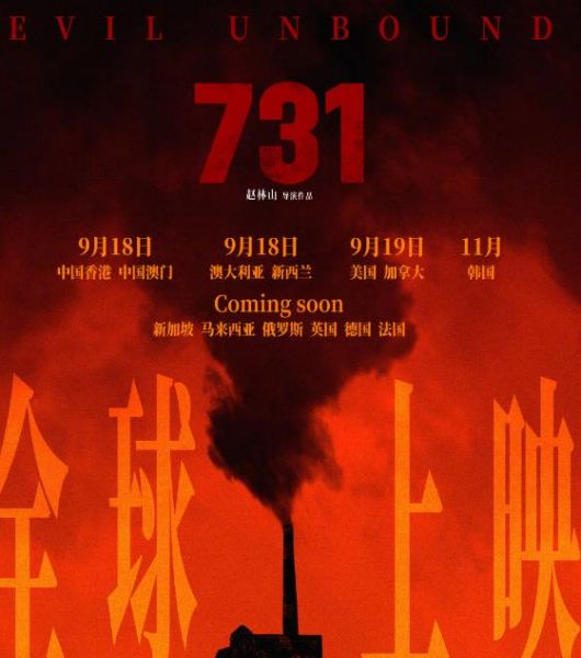 电影《731》今日发布全球上映海报。侵略者曾企图掩盖真相,但中国人民揭露历史的决心永不磨灭。《731》即将全球多地上映,让血色记忆成为全人类的警示。9月18日起电影上映,让和平的信念